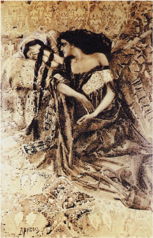 When Jacob and Rachel met for the first time, He bowed to her like a humble wayfarer. The herds were raising hot dust to the skies, The little well's mouth was covered by a boulder. He rolled the old boulder away from the well And watered the flock with clean water himself. Yet sweet little sadness crept into his heart With each passing day growing stronger. To wed her he bargained to toil seven years As shepherd for her artful father. Oh, Rachel! To the captive of love in his eyes The seven years seemed as a few dazzling days. Yet Laban was thirsty for silver, and wise, And mercy he didn't espouse, Assuming forgiveness for all kind of lies… As long as they serve his own house. He took homely Leah with his sure hand And led her to Jacob in his wedding tent. A sultry night reigns over high desert sky And spreads misty dews in the morning, While pulling her braids in despair all that night The younger of sisters is moaning, Sends curses to Leah and God for her doom Imploring the angel of death to come soon. As Jacob is dreaming the sweetest of dreams: The clear well spring in the valley And Rachel's eyes happily looking at him Her beautiful voice singing softly: O, weren't you kissing me, Jacob, with love Remember, you called me your black turtledove?
